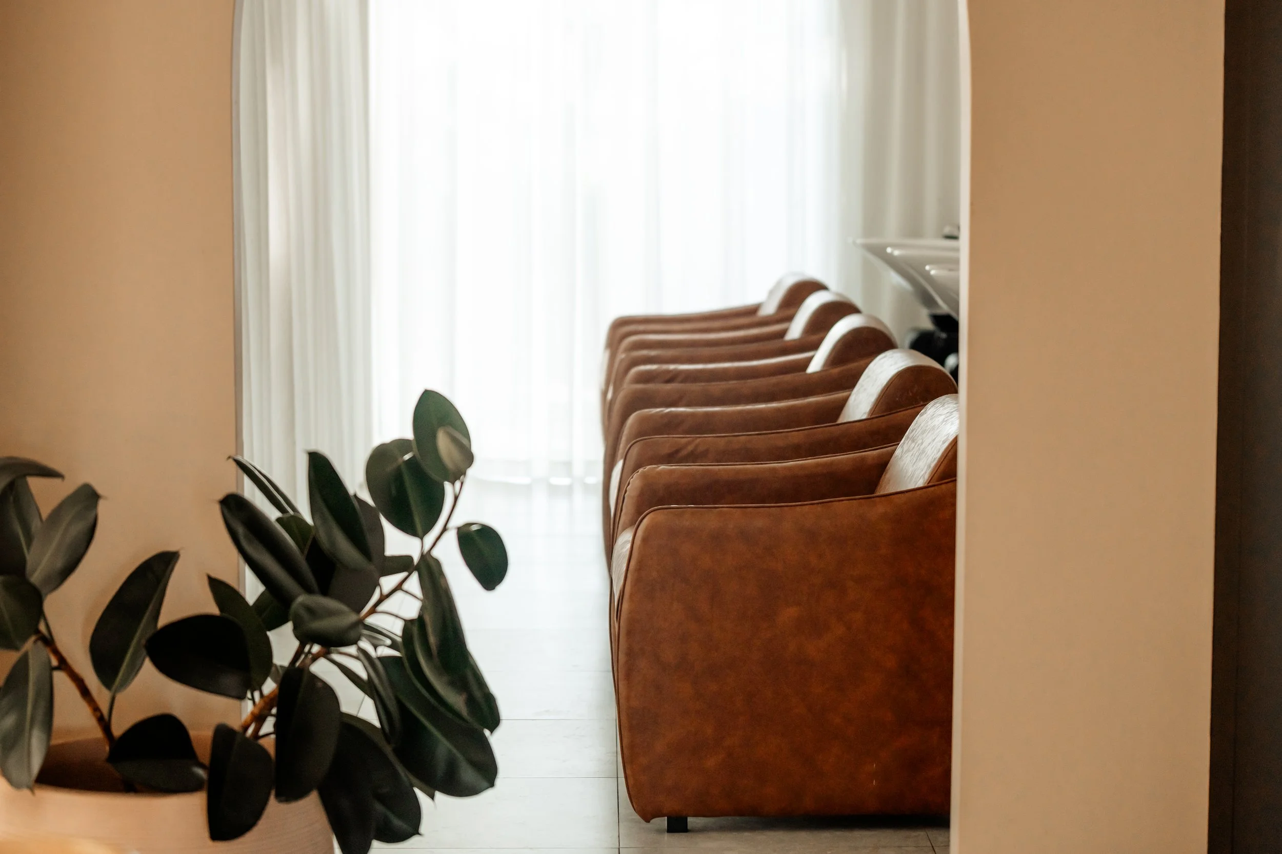 Our talented designer helped to bring our vision of shaping a space for selfcare to life. We use of various textures and modalities. Adjustable mood lighting, floor to ceiling sheer curtains, and custom cement render pieces. These elements envelope clients in a feeling of comfort and calm.